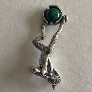 Pan Dancer Music Pendant .925 Sterling Silver w/ genuine Malachite gem USA