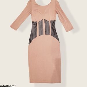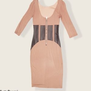 Stop traffic in this bebe midi dress, featuring a sexy black design at waist as shown on the pics, exposed back zipper, and a midi cut. A pair of black heels will complement this look.