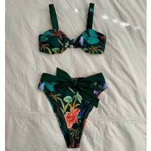 Cupshe Mara Knotted High Waisted Bikini in size Medium. Like new condition, only worn once as a try-on but decided this style is not for me. The bikini top features fixed wide straps with a front knot. The bikini bottom takes on a full retro feel with A contrast print belt ties at the front waist.