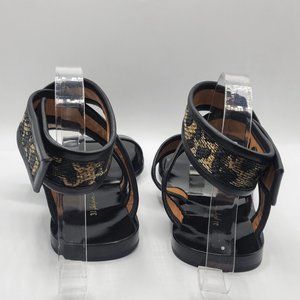 New without tag authentic black with gold accent three snap ankle wrap leather sandals. Size 38/7.