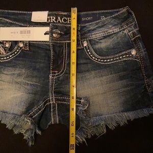 Grace in LA Sz 25 jean shorts. Butterfly design with bling in the wings on the back pockets as well as on the front small pocket. Never worn. Bought in Nashville
