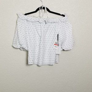 1. State Women's Ruffled Off-The-Shoulder Printed Top. Color: Ultra White/Black. Size: XS