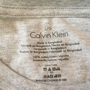 Calvin Klein Men’s Tee. Soft and comfortable crew-neck short-sleeved shirt. Calvin Klein logo at bottom left of shirt. 100% cotton. From pet free and smoke free home.