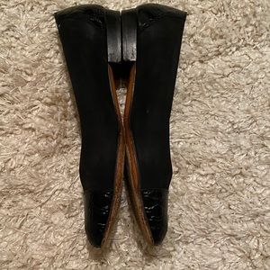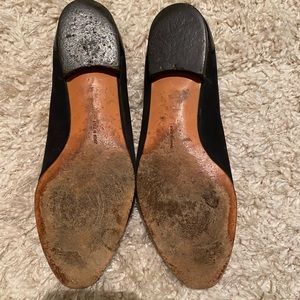 Salvatore Ferragamo size 9 black flats. I would say these are in good used condition. The soles have some wear but overall the shoe is in pretty good shape. Please see pics for wear, especially the soles.