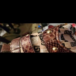Authentic Versace bag in a Beautiful gold browns snake skin design. Clean inside and out, no rips tears or odors. Approximately 16x7