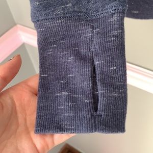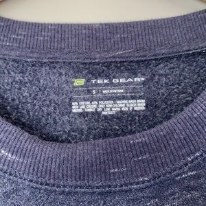 Navy sweatshirt from Tek Gear in size small. Has thumb holes that are great for keeping your hands warm and the inside is fuzzy and thick. Only worn a few times!!!
