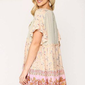 Gigio Cream Blush Dot Floral Mix Print Babydoll