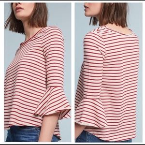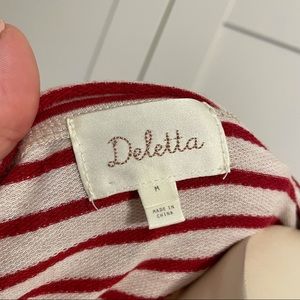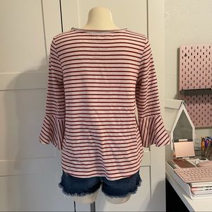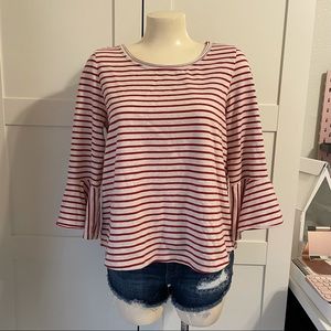 Gently worn, cute striped top from Deletta by Anthropologie. Size medium. Red and beige colors. Bell sleeves. Great condition!