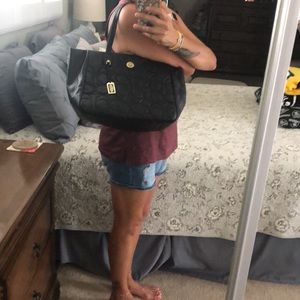 Beautiful black leather tote. Quilted with signature Cs. Gold tone hardware. Magnetic closure with turn lock. Inside has zip pocket and 2 slip pockets. No trades