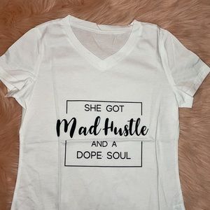 Letter print V-neck casual tee short sleeve