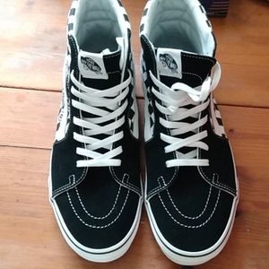 Brand new SK8-Hi checkered Vans. Never worn. Still have the box. Great deal and such a stylish choice!!!!