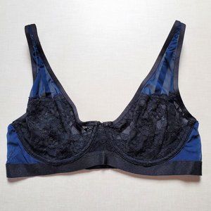 3/30$ ๐ Blush Esprit Plunge Bra Blue Black Mesh