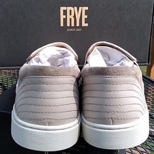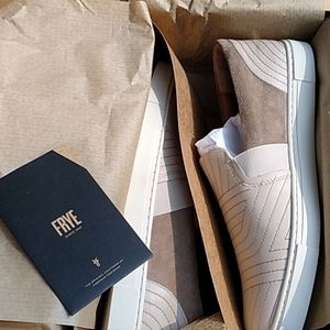 NIB Women's Frye Ivy Stitch Slip on off white shoes size 10. Back part feels like suede. Leather lined,, 1/2 inch heel height.. CUTE and comfortable; great brand!!!