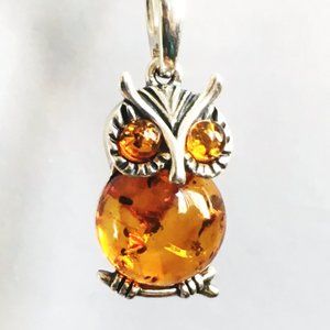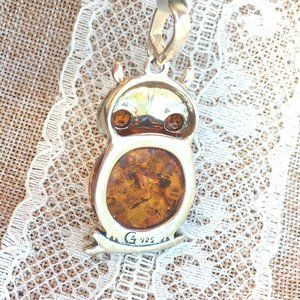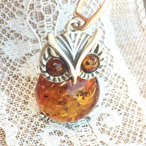 Baltic Amber Owl .925 Pendant Cognac Color Sterling Silver Genuine Large