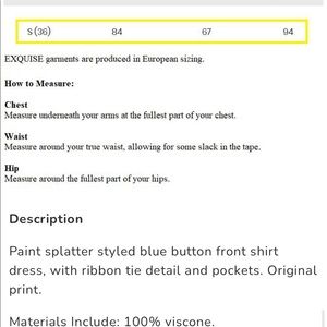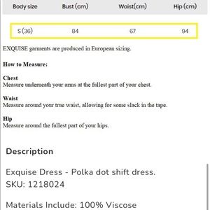 I just purchased this Exquise blue polka dot dress that was final sale but sadly it did not fit so am selling. Original price is $250, it’s a size 6 but runs small - it’s more like a size 2 but check the measurements to ensure it fits you before purchasing! It’s absolutely gorgeous on, fits your curves in all the right places, and is silky smooth fabric - it hangs beautifully on the body. Huge $100 discount to $150, European designer so can’t get it in the states- it’s one of a kind here!