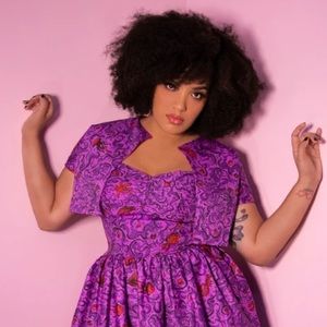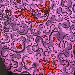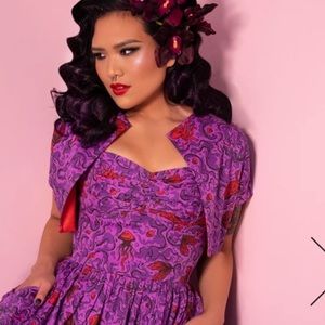 A true gem from our Tropical Terror collection, this hauntingly beautiful new vintage inspired bolero is the perfect addition to your wardrobe! Featuring artwork by designer Micheline Pitt, which was inspired from vintage 1940's and 1950's mermaid novelty prints. Following the lore of sea sirens who would bring men to their watery graves, this murky water is filled with human bones, sea creatures and more! The bolero is lined in a soft and pretty stretch burgundy charmeuse.