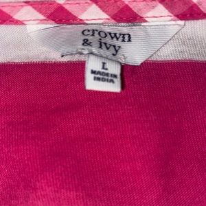 Crown & Ivy Large Pink/White Striped Cotton Dress. New without tags. Was never worn. Measures approximately 19” armpit to armpit and approximately 35” long. From a smoke free, Maltipoo friendly home.