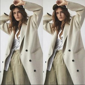 Stay warm and in style all season long in this staple, longline coat designed in a gorgeous wool fabrication for forever timeless style.