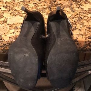 Style: Peep-toe ankle bootie with a high stiletto heel