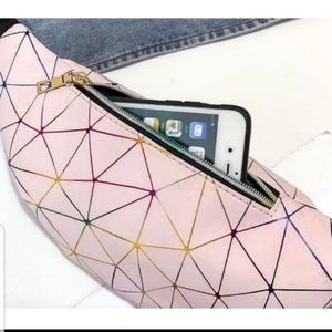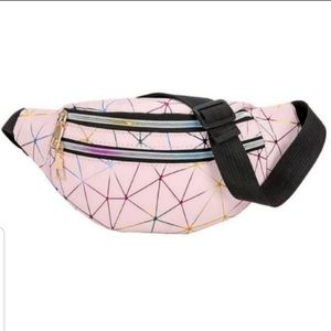 Pink Pillowshaped Holographic Fanny Pack Crossbody
