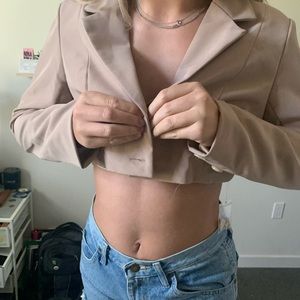 princess polly taupe blazer. Size L/XL shown on S/M model