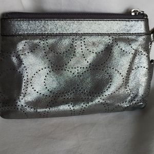 Coach Silver Leather Wristlet, EUC