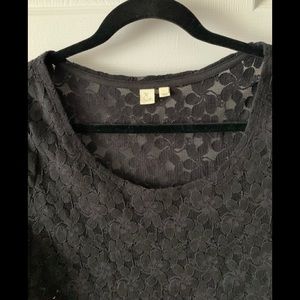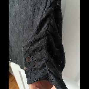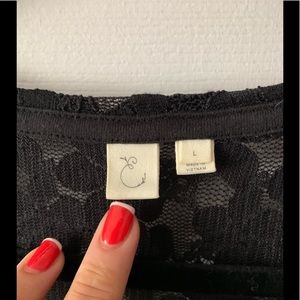 Beautiful stretch, scoop neck black lacy top by Elioise (Anthropologie) 3/4 length sleeves. Can be worn with a tank under or a black bra for a more risqué look 😍 in Excellent/like new condition. Size Large