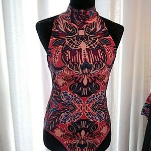 Mock neck sleeveless halter body suit top. Worn once. Perfect condition. Sleeveless mock neck body suit top.
