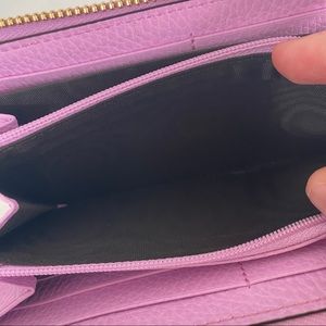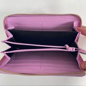Super cute limited edition Bosco dog wallet. Features lavender pink pebbles leather and is a full zip long wallet style. Tons of space for cards, cash, receipts, etc. inside.