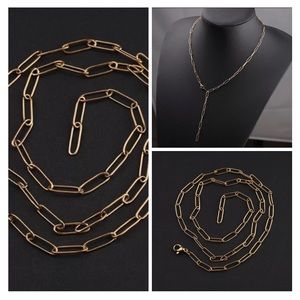 Dainty Gold Plated Paperclip Chain Necklace Stainless Steel Rectangle Elongated Link Layering Necklace Gold 16” Adjustable. Thank you!