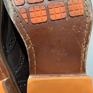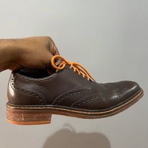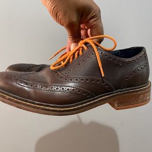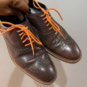 Vintage Dark Brown Cole Haan Lace up shoes with orange contrast shoe laces. Sharp and Smart.