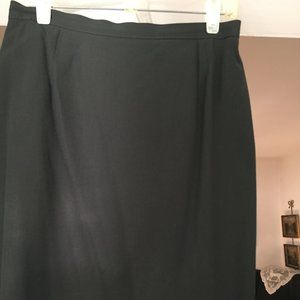 From Paris, beautiful vintage two piece, light wool blend dark navy suit. Silky black lining. The jacket has 4 black brass round buttons and black and white3/4 inch grosgrain ribbon binding. The skirt also lined is a mild A-line style. Size 44 USA 10 -12