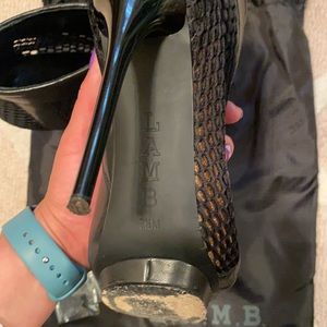Sexy L.A.M.B mesh high heels, fashionable style with leather upper and leather sole. Gwen Stefani unique style with a sexy edge to dress up any outfit.