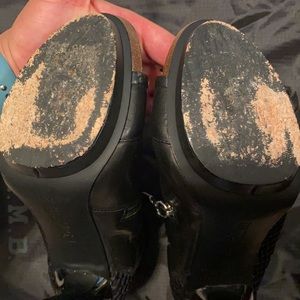 Condition: Definitely some wear on the outsole bottom and the end of the heel (top piece) clearly will need some tlc comes with dust bag and top piece replacements.