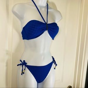 Cobalt Blue Textured Check 2 Pc Bikini
