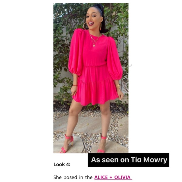 Alice + Olivia Shayla Bold Pink Puff Sleeve Mini Dress