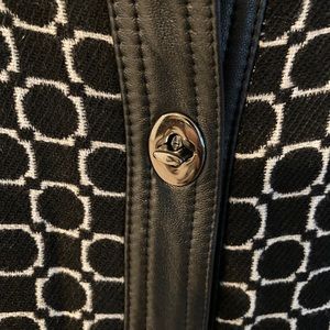 This black and white Liz jacket is nice with faux leather trip and beautiful closures just in time for Back to School