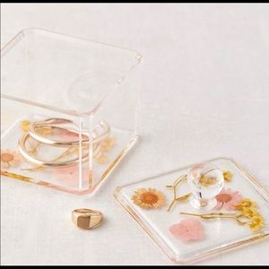 super cute urban outfitters floral acrylic stash box decorated with pressed flowers! perfect for storing jewelry, crystals, etc.!
