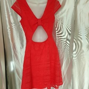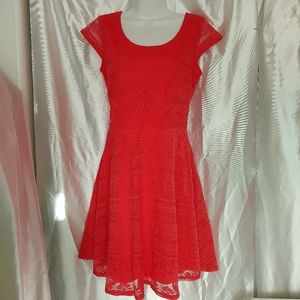 Xhilaration lace peekaboo back mindi dress red with a slight Coral tint S/P 15 1/2" pit to pit 33 1/2" shoulder to hem