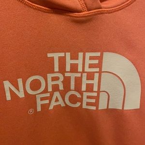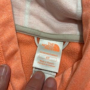The North Face hoodie. Women’s size Small. Pockets in front. Great used condition. Peachy orange color.