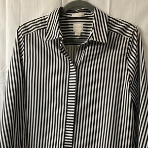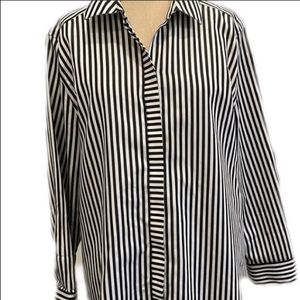 🔲CHICO’s🔲Black/White Striped No-Iron Shirt