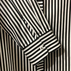 ▪️Gorgeous▪️Crisp Button-Up▪️Collared Long Sleeve Shirt With Vertical Black and White Stripes, Hidden Buttons and Tailored Shirttail Hem Worn Once. Great for everyday wear, and wonderful for travel featuring it’s no-iron, wrinkle-free style perfect for your on-the-go lifestyle. So much prettier than the pictures capture!!! Please view all pictures and ask questions. BUNDLE & SAVE!