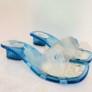 Vintage 90s Y2K Flower Blue Plastic Sandals