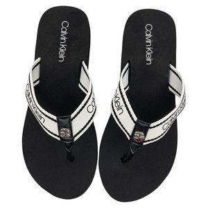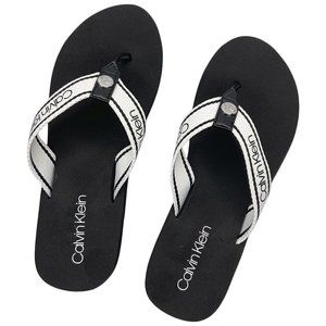 NWT CALVIN KLEIN AUTHENTIC CALEE2 WOMEN'S BLACK FABRIC STRAPS SLIP ON SANDALS