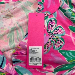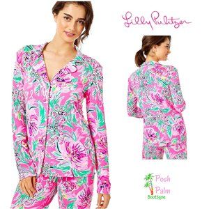 Lilly Pulitzer PJ Knit LS Button Up Top Cockatoo Pink Paws For a Cause Floral X-Small