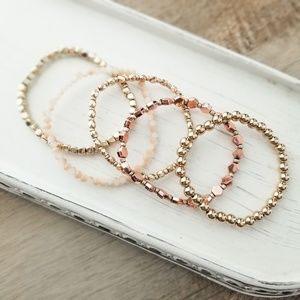 Rose Gold Beaded Stackable Stretch Bracelet Set