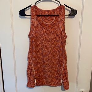 Athleta tank top. Zippered pocket on back. Red, gray, and white pattern material. Size XS. Used but in good condition. 10