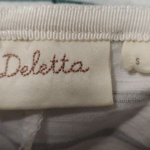 Deletta Anthro white green peplum top Small