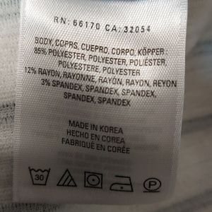 Body: 85% polyester 12% rayon 3% spandex.