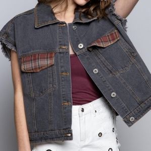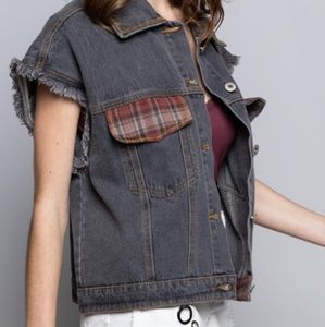 POL Plaid Pocket Short Sleeve Denim Jacket SOLD OUT